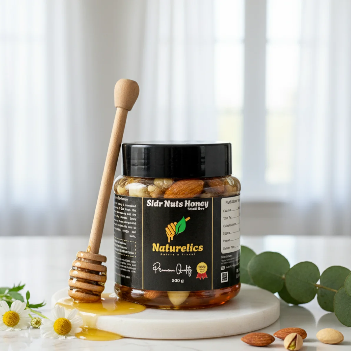 Enjoy this combination with your love one's.Nuts HoneyPure honey and Crunchy NutsShop nowTo enjoy pure nature, pick anyone.Pure Sidr & Wild HoneyA Vision of Pure Natural HoneyDiscovery nowEnjoy every movement of life with naturelics pure honey and crunchy nuts honey.Naturelic'sThe Hub of Natural ProductsShop now